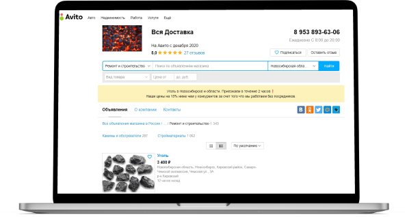 Авитологи провели бесплатную аналитику авито и выявили самые целевые запросы по Новосибирской области. Запустили аккаунт сначала по одному из направлений - продажа угля. Потом подключили по сезону глину, щебень, песок, чернозем.